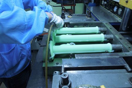生产硅胶制品时,常常会出现产品粘在模具上不好取、或取不下来的问题,这就是硅胶粘模。那硅橡胶产品粘模怎么办呢?以模压工艺举例,硅胶制品厂常用的一个简单处理方法就是,模具每生产一次产品,都用肥皂水对着模具挤一点,在挤出的同时,用高压气枪将肥皂水吹成雾状附着在模腔内。这样在下次生产产品时,就不会出现粘模现象了。