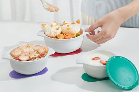因为硅胶不会和任何物质和液体发生反应,所以保证了稳定性和安全性,由于稳定性好,产品也表现出其特性。如耐高低温,硅胶餐具可在高温下消毒与清洗,也可放入冰箱中冷藏。柔软舒适性,产品具有良好的回弹力度与韧性强度,可长期使用不变形、不会损坏,来回弯曲回弹力度好清洗方便。儿童硅胶碗环保无毒并且颜色与形状图案多样化更能吸引儿童的眼球!